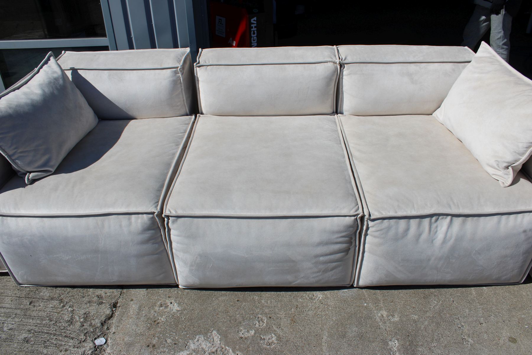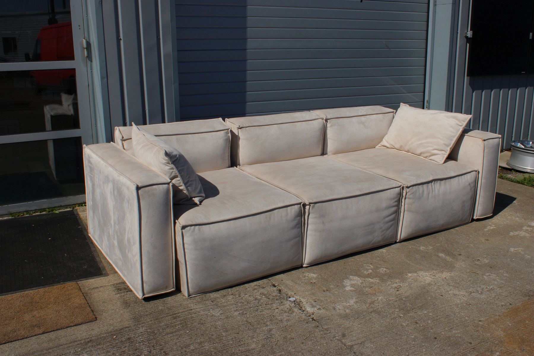 Sofaservice hele eritellimusdiivan ja kaks diivaniga samasuguse kattega patja.